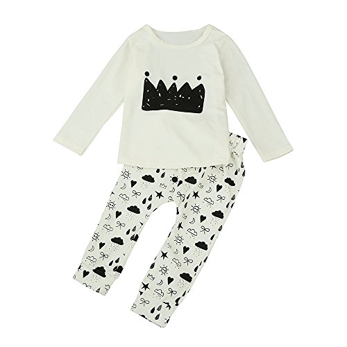 Tovadoo 子供服 ベビー服 男女共用 トップス+ズボン 秋冬 長袖 パジャマ 王冠柄 天気妖怪 キュート 部屋着 保育園