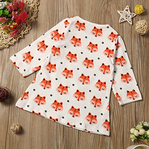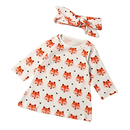 Tovadoo 子供服 ベビー服 女の子 トップス+ヘアバンド ワンピース 秋冬 長袖 ギツネ柄 キュート 保育園 プレゼント