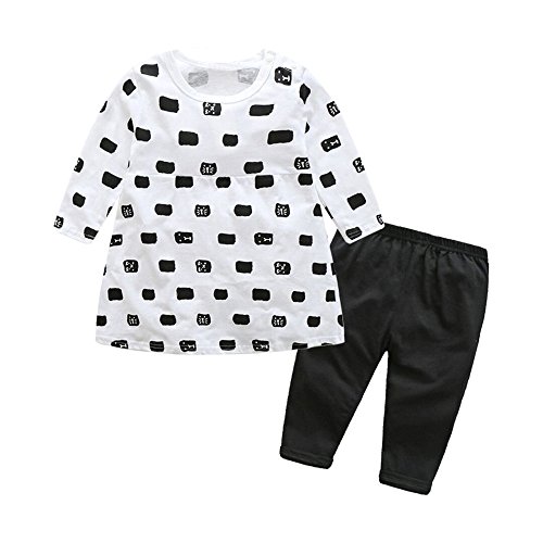 Tovadoo 子供服 ベビー服 女の子 ワンピース+ズボン 秋冬 長袖 プリント 猫柄 可愛い キュート 保育園 プレゼント