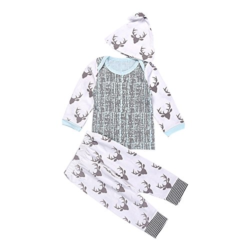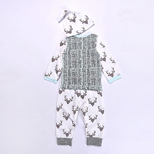 Tovadoo 子供服 ベビー服 男女共用 トップス+ズボン+ハット 秋冬 長袖 グレー プリント 鹿柄 可愛い キュート 保育園 プレゼント