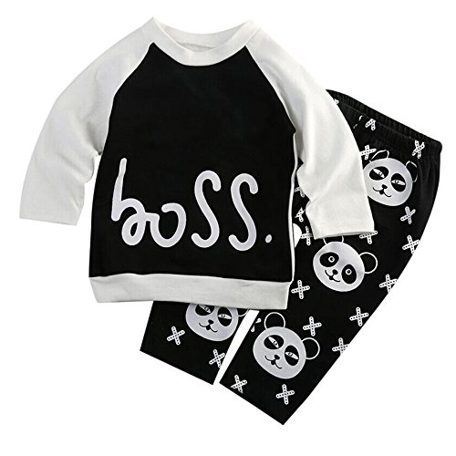 Tovadoo 子供服 ベビー服 男の子 トップス+ズボン 秋冬 長袖 プリント パンダ柄 黒 可愛い キュート 保育園 プレゼント