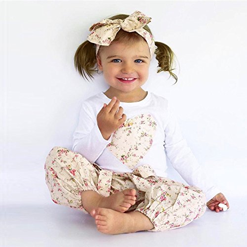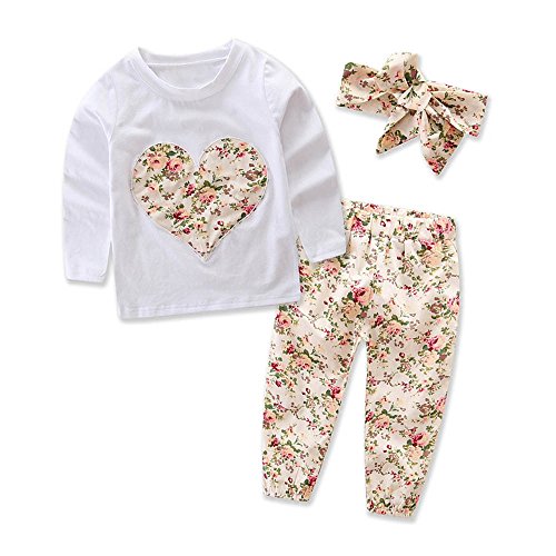 Tovadoo 子供服 ベビー服 女の子 トップス+ズボン+ヘアバンド 秋冬 長袖 小花柄 ハート柄 キュート おしゃれ ファッション 保育園 旅行 プレゼント