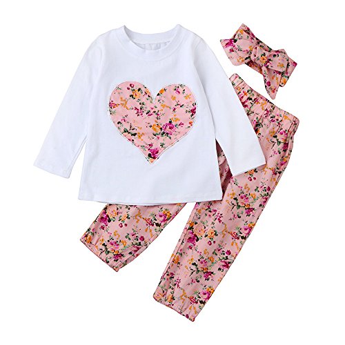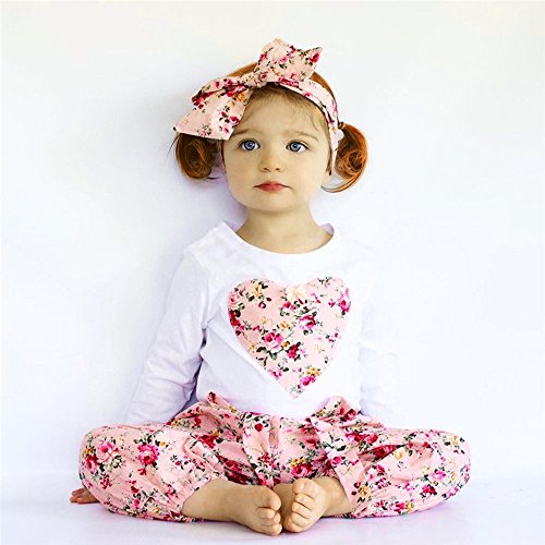 Tovadoo 子供服 ベビー服 女の子 トップス+ズボン+ヘアバンド 秋冬 長袖 小花柄 ハート柄 キュート おしゃれ ファッション 保育園 旅行 プレゼント