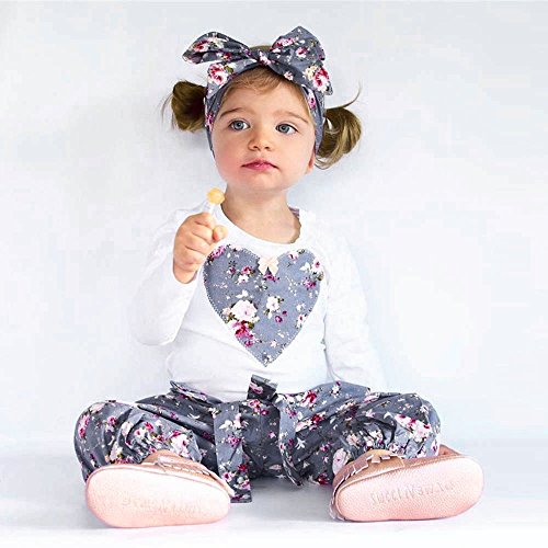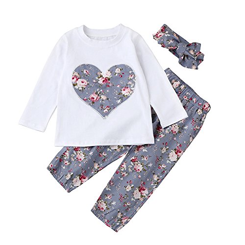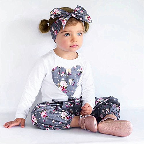 Tovadoo 子供服 ベビー服 女の子 トップス+ズボン+ヘアバンド 秋冬 長袖 小花柄 ハート柄 キュート おしゃれ ファッション 保育園 旅行 プレゼント
