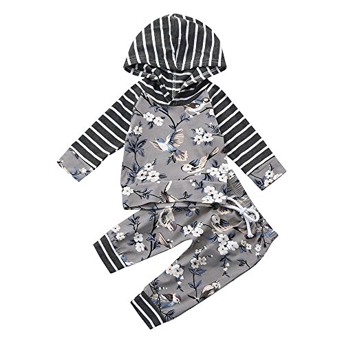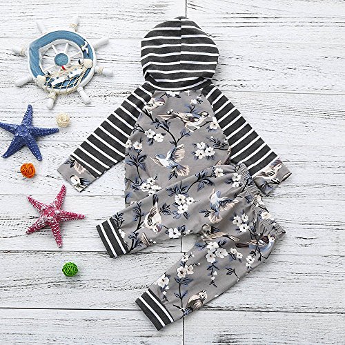 Tovadoo 子供服 ベビー服 女の子 トップス+ズボン パーカー 秋冬 長袖 花と鳥 可愛い 保育園 部屋着 プレゼント