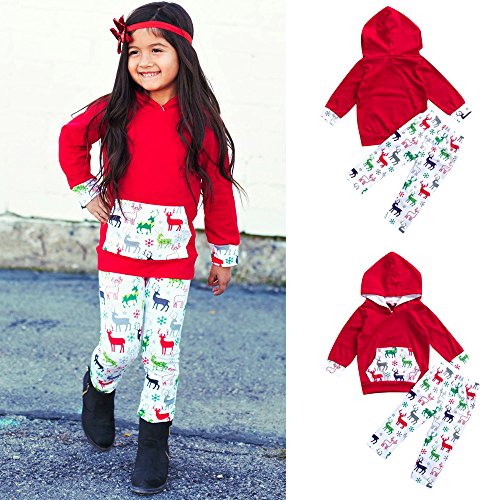 Tovadoo 子供服 ベビー服 女の子 トップス+ズボン パーカー 秋冬 クリスマス服 ヘラジカ柄 カラー 可愛い 保育園 部屋着 パーティー プレゼント