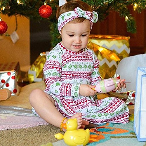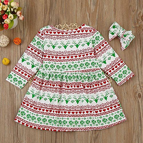 Tovadoo ワンピース+ヘアバンド 子供服 女の子 クリスマス衣装 長袖 北欧風 プリンセス 可愛い おしゃれ クリスマスパーティー 1-4歳