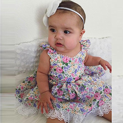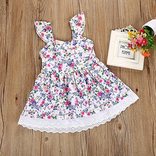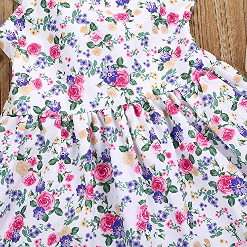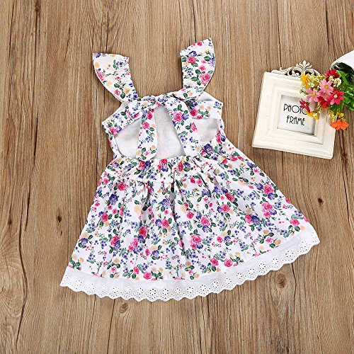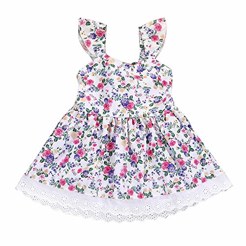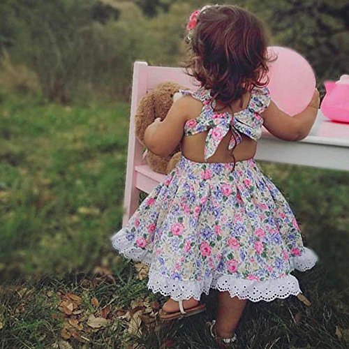 Tovadoo 子供服 女の子 ワンピース ノースリーブ 花柄 背中リボン レース アンティーク調 プリンセス 可愛い 結婚式 子供の日 通学 旅行 1-5歳