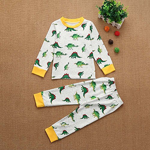 Tovadoo 子供服 男の子 トップス+ズボン 春新作 長袖 恐竜柄 グリーン パジャマ 可愛い プレゼント 通学 旅行 2-7歳