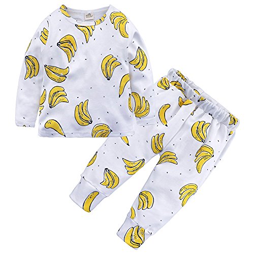 Tovadoo 子供服 男の子 女の子 トップス+ズボン 春新作 長袖 パジャマ バナナ柄 フルーツ 韓国風 カジュアル 可愛い プレゼント 通学 旅行 18ヶ月-7歳