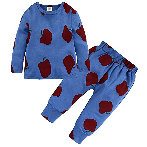 Tovadoo 子供服 男の子 女の子 トップス+ズボン 春新作 長袖 パジャマ りんご柄 フルーツ 韓国風 カジュアル 可愛い プレゼント 通学 旅行 18ヶ月-7歳