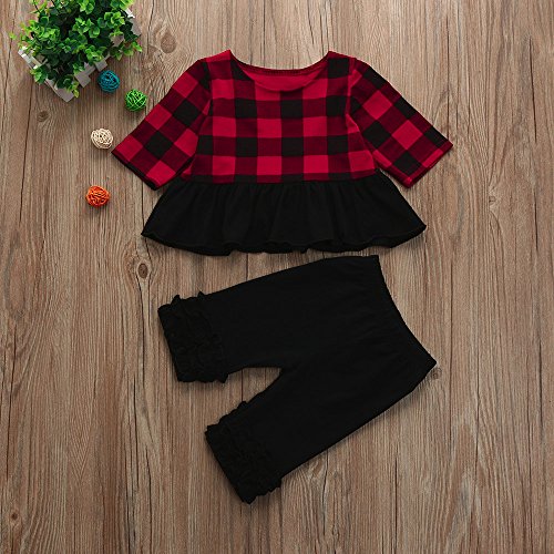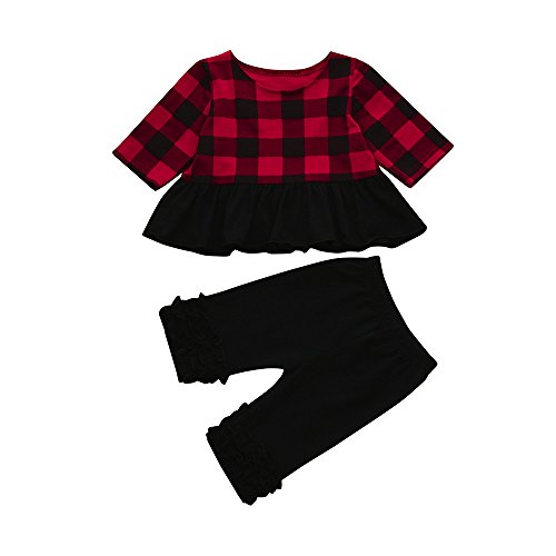 Tovadoo 子供服 ベビー服 女の子 トップス+ズボン 春夏 ワンピース チェック柄 レトロ風 プリンセス 可愛い プレゼント 通学 旅行 海遊び 1-4歳