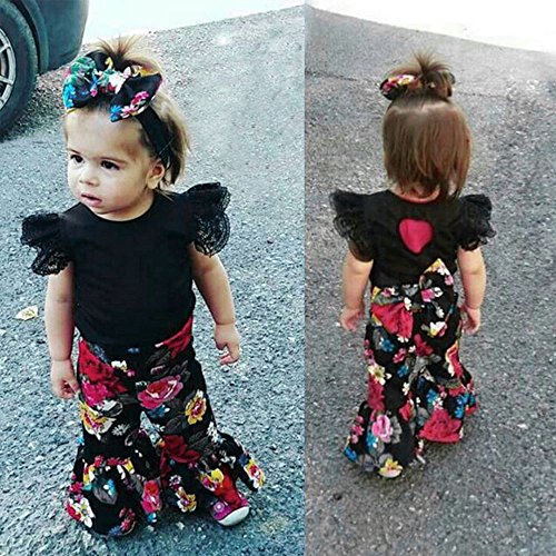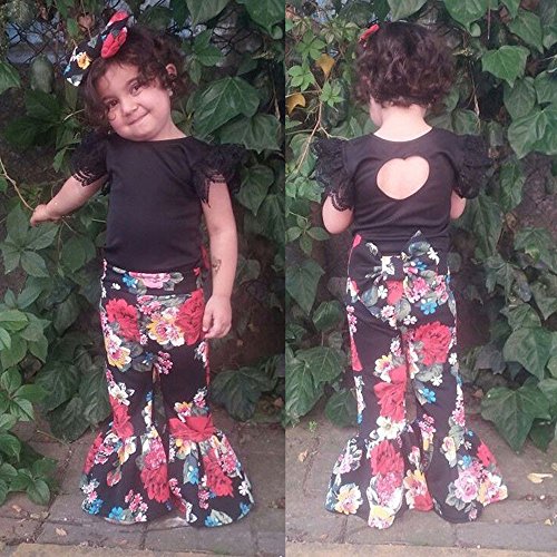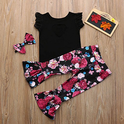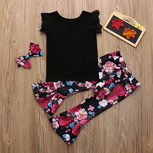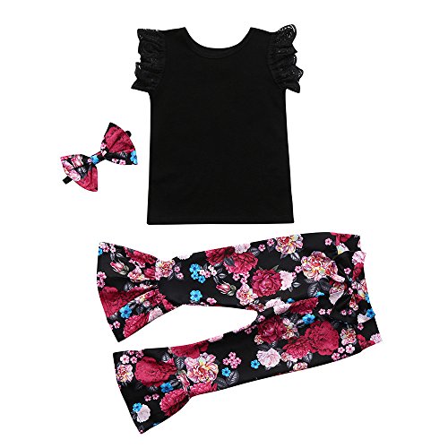 Tovadoo 子供服 ベビー服 女の子 トップス+ラッパズボン+ヘアバンド 春夏 フレアスリーブ タンクトップ 英字 花柄 レトロ風 プリンセス 可愛い プレゼント 通学 旅行 海遊び 2-6歳