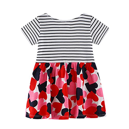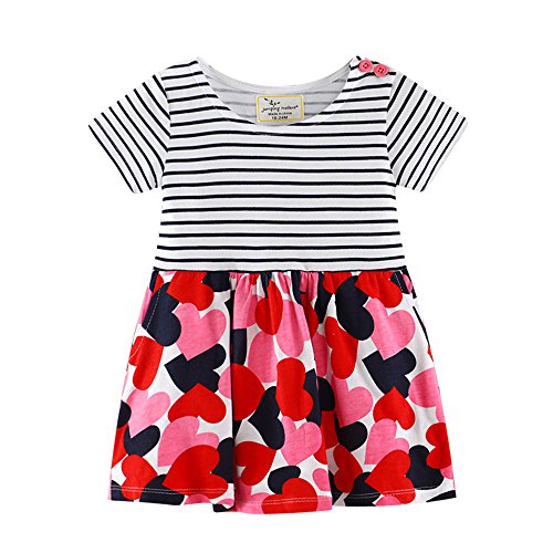 Tovadoo 子供服 ベビー服 女の子 ワンピース 春夏 半袖 ハート柄 鳩柄 縞模様 多色 可愛い プレゼント 通学 旅行 海遊び 18ヶ月-6歳