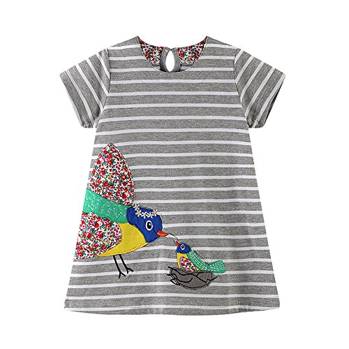 Tovadoo 子供服 ベビー服 女の子 ワンピース 春夏 半袖 動物柄 鳥柄 猿柄 縞模様 多色 可愛い プレゼント 通学 旅行 海遊び 18ヶ月-6歳