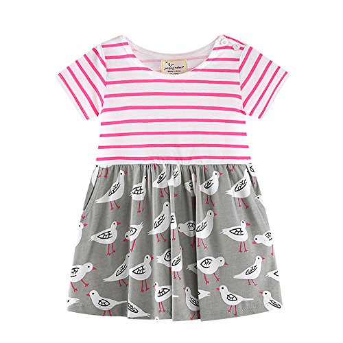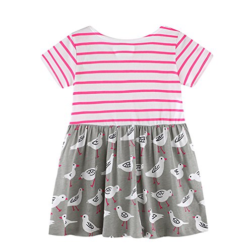 Tovadoo 子供服 ベビー服 女の子 ワンピース 春夏 半袖 ハート柄 鳩柄 縞模様 多色 可愛い プレゼント 通学 旅行 海遊び 18ヶ月-6歳