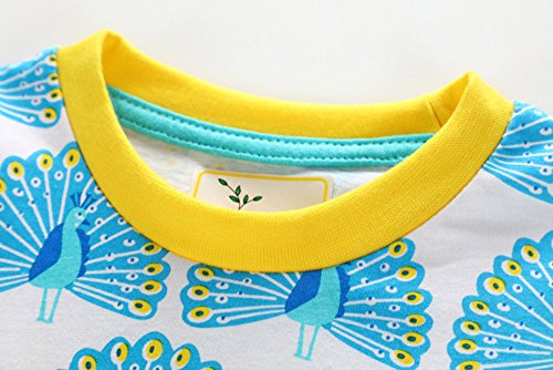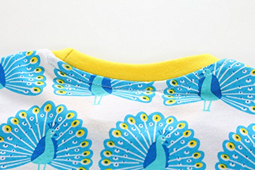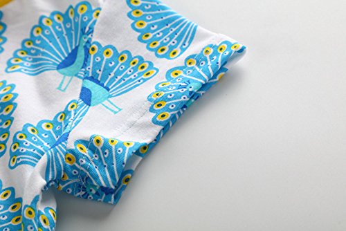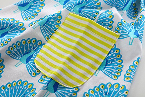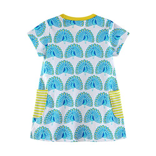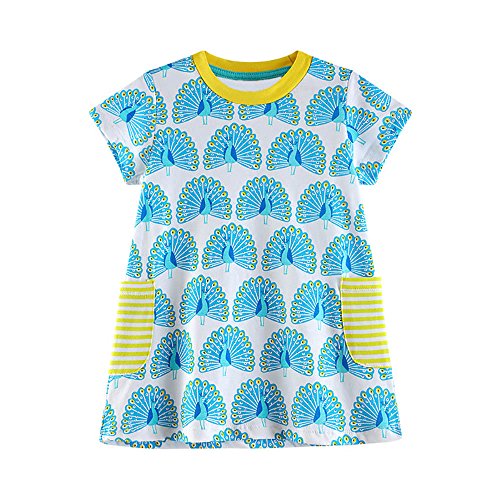 Tovadoo 子供服 ベビー服 女の子 ワンピース 春夏 半袖 孔雀柄 ポケット 可愛い プレゼント 通学 旅行 海遊び 18ヶ月-6歳