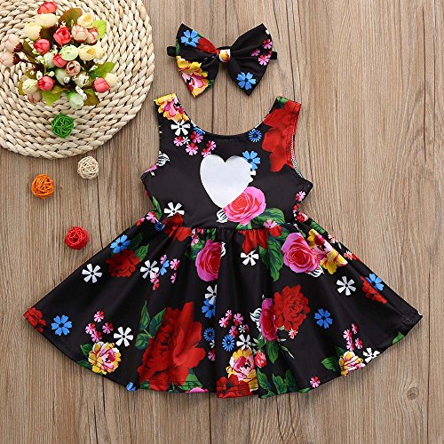 Tovadoo 子供服 ベビー服 女の子 ワンピース+ヘアバンド 春夏 ノースリーブ 背中ハート レトロ風 プリンセス 可愛い プレゼント 通学 旅行 結婚式 18ヶ月-4歳