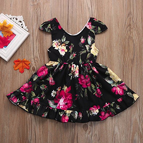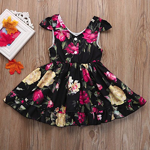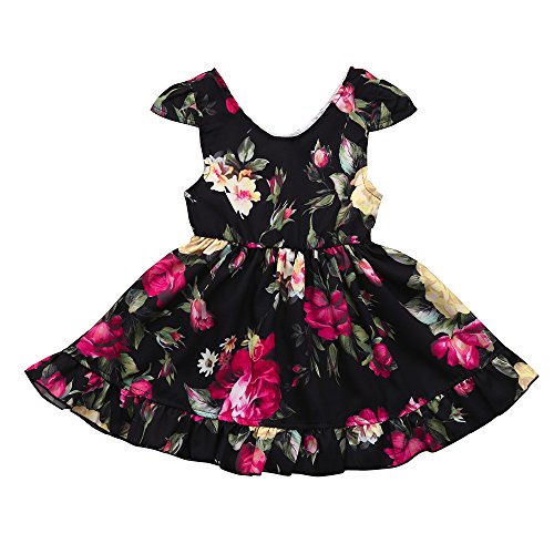 Tovadoo 子供服 ベビー服 女の子 ワンピース 春夏 花びらスリーブ 花柄 レトロ プリンセス 可愛い プレゼント 通学 旅行 結婚式 2-6歳