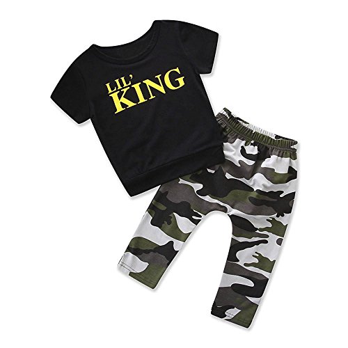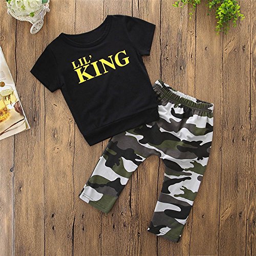 Tovadoo 子供服 ベビー服 男の子 トップス+ズボン 春夏 半袖 迷彩柄 英字柄 韓国風 可愛い プレゼント 通学 旅行 海遊び 1-4歳