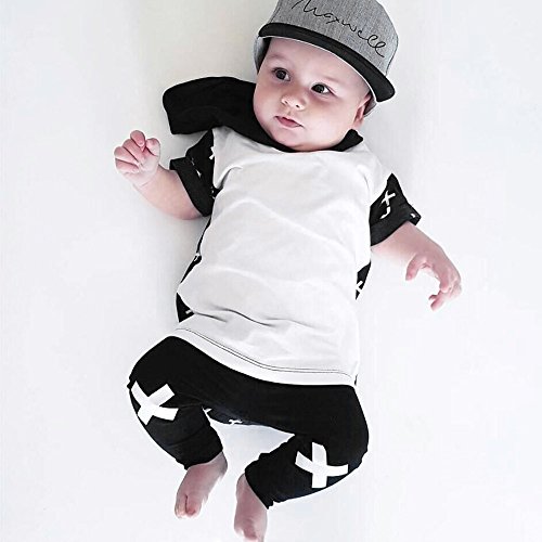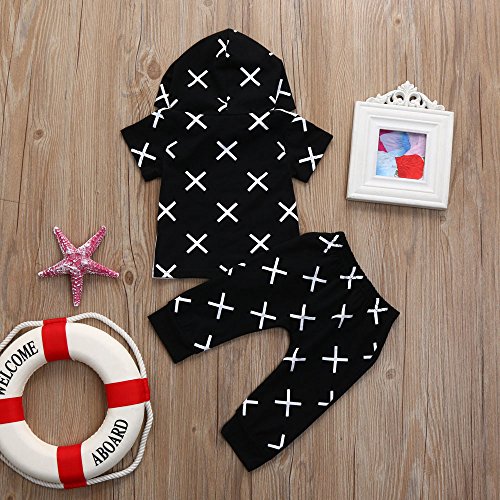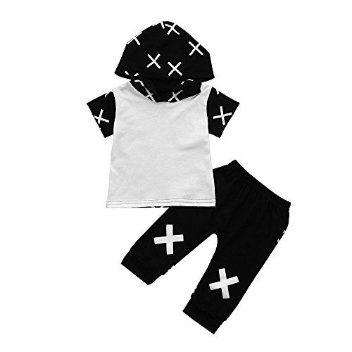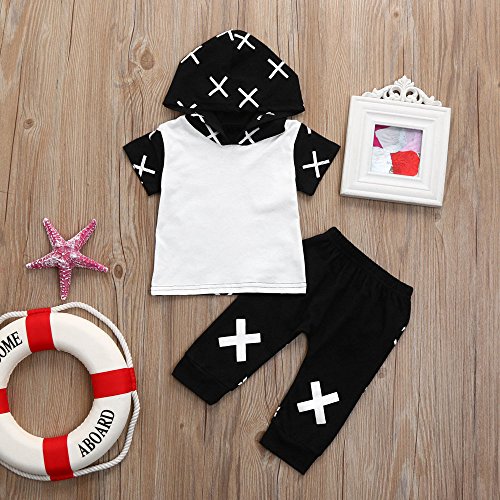 Tovadoo 子供服 ベビー服 男の子 トップス+ズボン 春夏 半袖 パーカー プラス記号柄 韓国風 可愛い プレゼント 通学 旅行 海遊び 3-18ヶ月