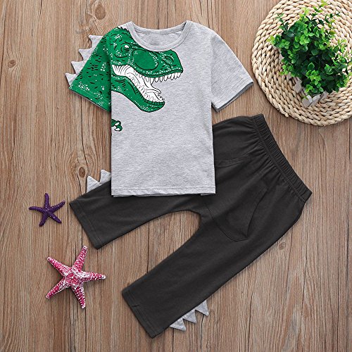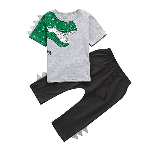 Tovadoo 子供服 ベビー服 男の子 トップス+ズボン 春夏 半袖 恐竜柄 多色 カッコイイ 可愛い プレゼント 通学 旅行 海遊び 18ヶ月-4歳
