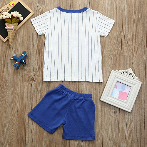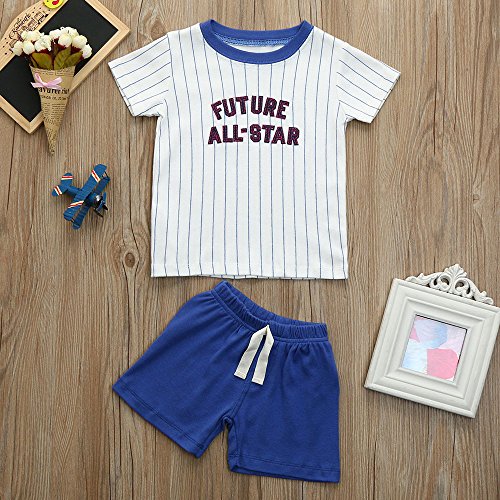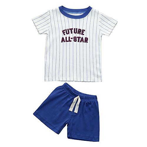 Tovadoo 子供服 ベビー服 男の子 女の子 トップス+ズボン 春夏 半袖 英字柄 ボーダー柄 野球服 サッカー服 可愛い プレゼント 通学 旅行 海遊び 6-24ヶ月