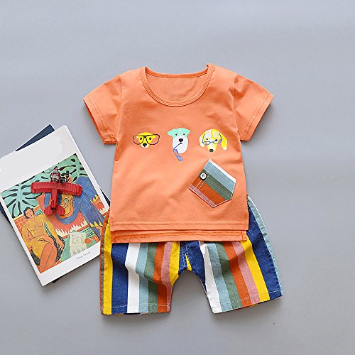 Tovadoo 子供服 ベビー服 男の子 トップス+ズボン 春夏 半袖 動物 犬柄 ストライプ 虹色 多色 可愛い プレゼント 通学 旅行 海遊び 12ヶ月-3歳