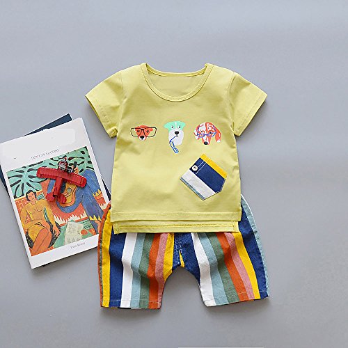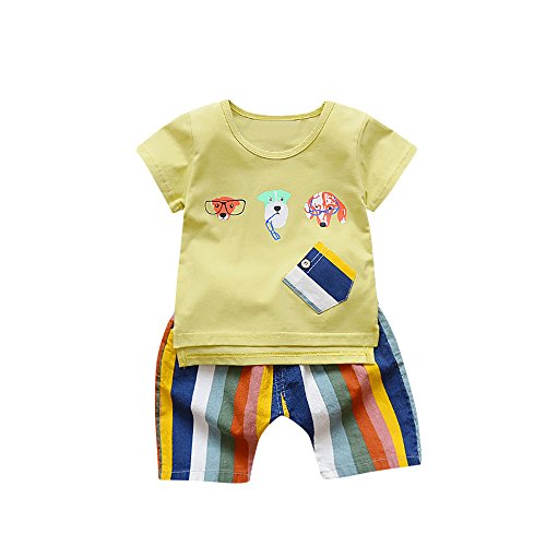 Tovadoo 子供服 ベビー服 男の子 トップス+ズボン 春夏 半袖 動物 犬柄 ストライプ 虹色 多色 可愛い プレゼント 通学 旅行 海遊び 12ヶ月-3歳