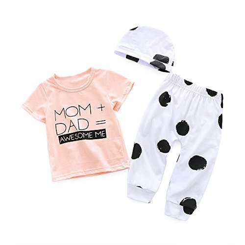 Tovadoo 子供服 ベビー服 女の子 トップス+ズボン+帽子 春夏 MOM+DAD=AWESOME ME 英字柄 ドット 可愛い プレゼント 通学 旅行 海遊び 6-24ヶ月