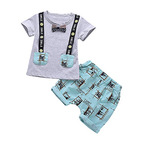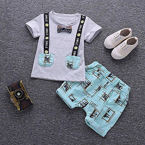 Tovadoo 子供服 ベビー服 男の子 トップス+ズボン 春夏 半袖 ネクタイ柄 バンド付き 欧米 レトロ 多色 可愛い プレゼント 通学 旅行 海遊び 1-3歳