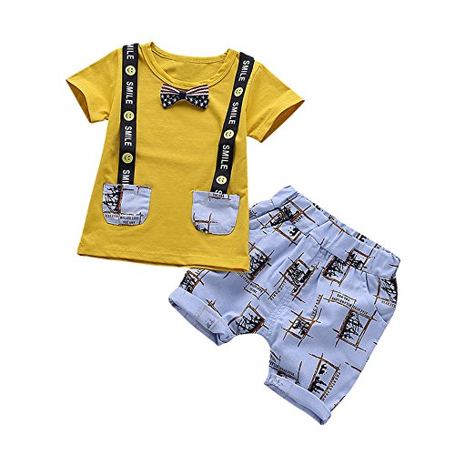 Tovadoo 子供服 ベビー服 男の子 トップス+ズボン 春夏 半袖 ネクタイ柄 バンド付き 欧米 レトロ 多色 可愛い プレゼント 通学 旅行 海遊び 1-3歳
