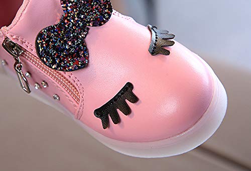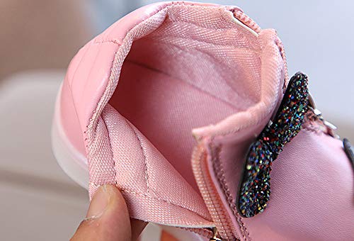 Tovadoo スニーカー 子供靴 男の子 女の子 蝶結び付き ラインストーン LED ライト付き光る靴 発光靴 七彩女の靴 LED輝 運動靴 無地 通気性よい 多色 四季用 可愛い カジュアル 通学 旅行 プレゼント 1-6歳 Colorful Light Shoes (ピンク, 13.5)