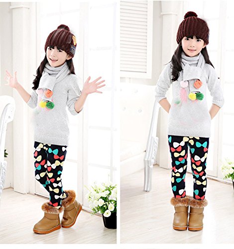 Tovadoo 子供服 ベビー服 女の子 ズボン レギンス 秋冬 厚手 暖かい リボン柄 水玉柄 部屋着 保育園 旅行 プレゼント 4-8歳