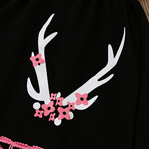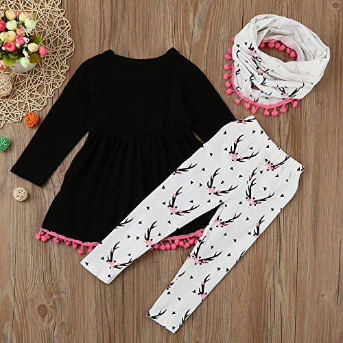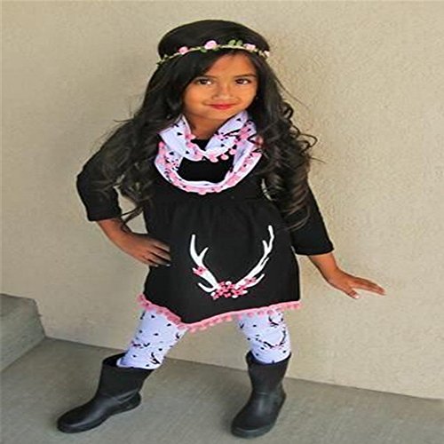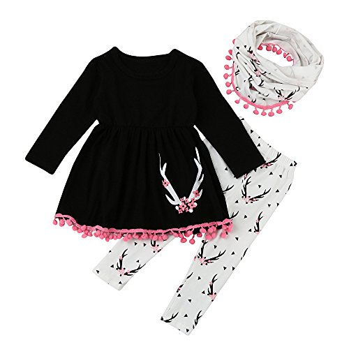 Tovadoo 子供服 ベビー服 女の子 トップス+ズボン+マフラー 秋冬 長袖 ワンピース タッセル 鹿柄 1-5歳 保育園 旅行 プレゼント