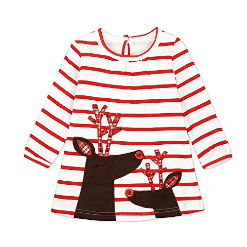 Tovadoo ワンピース 子供服 女の子 クリスマス衣装 ヘラジカ柄 縞模様 プリンセス 可愛い おしゃれ クリスマスイブ クリスマスパーティー 1-6歳