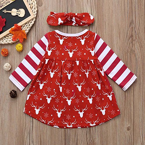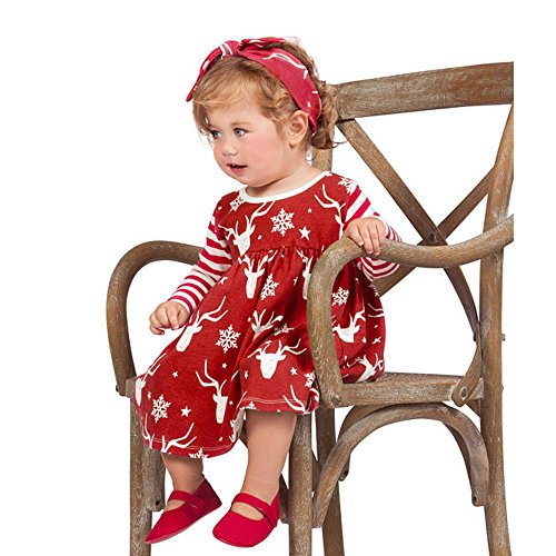 Tovadoo ワンピース+ヘアバンド 子供服 女の子 クリスマス衣装 ヘラジカ 雪柄 プリンセス 可愛い おしゃれ クリスマスパーティー 0.5-1歳