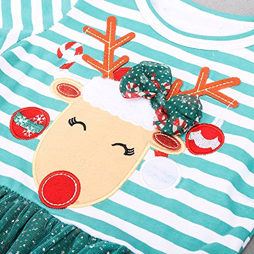 Tovadoo ワンピース チュールスカート 子供服 女の子 クリスマス衣装 縞模様 ヘラジカ柄 プリンセス 可愛い おしゃれ クリスマスイブ クリスマスパーティー 9ヶ月-5歳