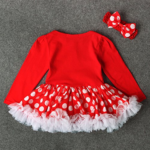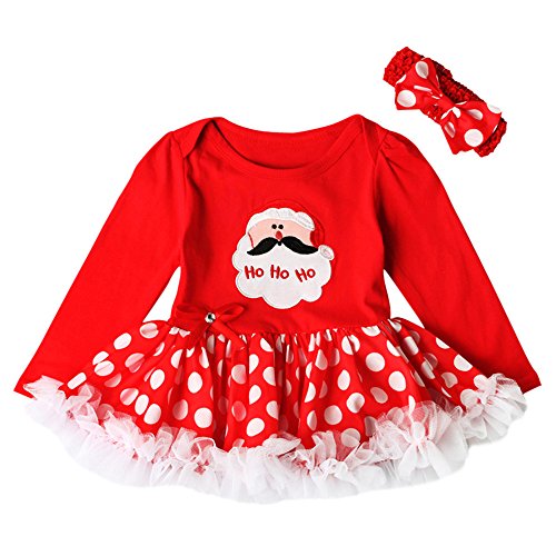 Tovadoo ワンピース+ヘアバンド ローンパス 2点セット 子供服 女の子 クリスマス衣装 水玉模様 サンタ柄 プリンセス 可愛い おしゃれ クリスマスイブ クリスマスパーティー 3-18ヶ月