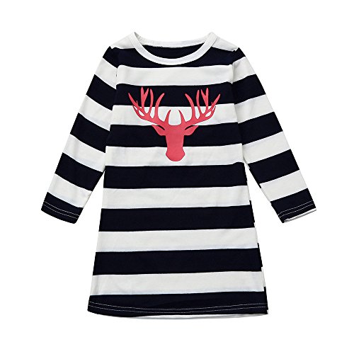 Tovadoo ワンピース 子供服 女の子 クリスマス衣装 ヘラジカ 縞模様 プリンセス 可愛い おしゃれ クリスマスパーティー 2-6歳