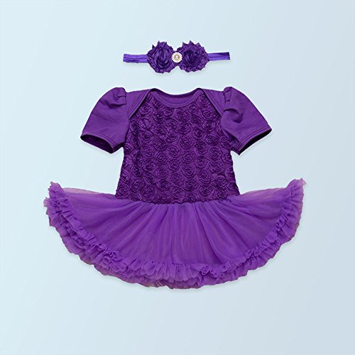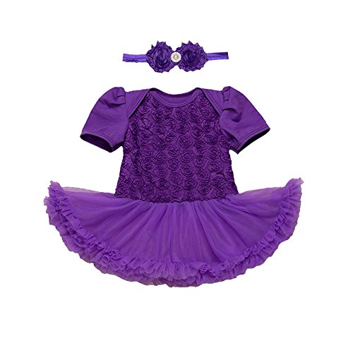 Tovadoo 子供服 女の子 ドレス+ヘアバンド ロンパース 半袖 チュールスカート ローズ柄 フォーマル プリンセス 姉妹揃い 可愛い おしゃれ 結婚式 発表会 3-24ヶ月