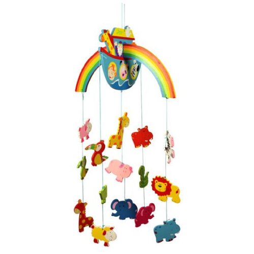 The Ark featured in this wooden Mobile is almost ready to depart but there are still some cheery latecomers dangling around! A vibrant accessory that's an ideal addition to any playroom or bedroom and is sure to keep youngsters captivated during their formative years. Not a toy. Wooden room accessories from Bigjigs Toys are available in five themes: Pirate, Fairy, Farm, Noah's Ark and Space. The Pirate and Fairy collections include a Height Chart, Mobile, Name Plaque, Coat Hook, Bookends and a Blackboard with Coat Hooks. The Farm, Noah's Ark and Space collections include a Height Chart, Mobile, Coat Hook and Bookends. Made from high quality, responsibly sourced materials. Conforms to current European safety standards. Height: 660mm.