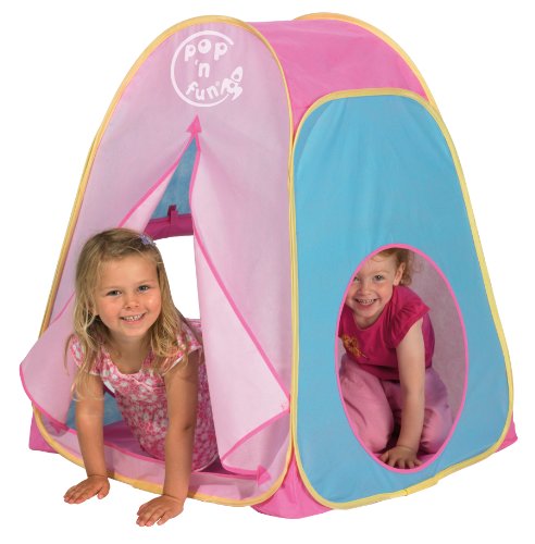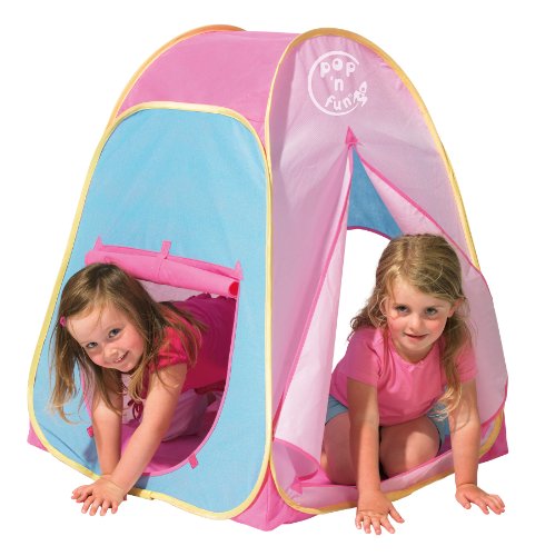 A fun brightly coloured pop up four sided play tent that has two doors to clamber in and out of during your children's adventures. The tent pops up into position within seconds and can be folded flat for compact storage. Great for indoor and outdoor adventures and active fun!