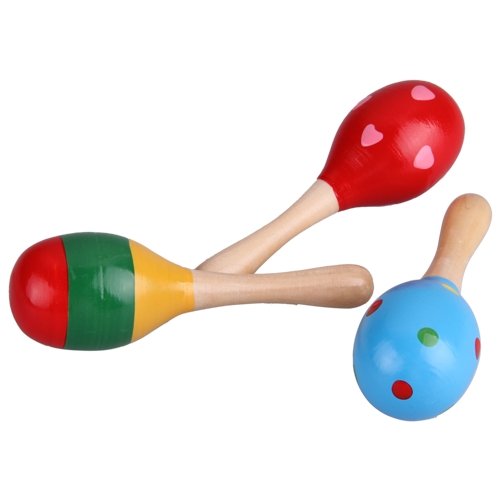 2 Wooden Wood Maraca Rattles Shaker Percussion kid Baby Musical Toy Favor