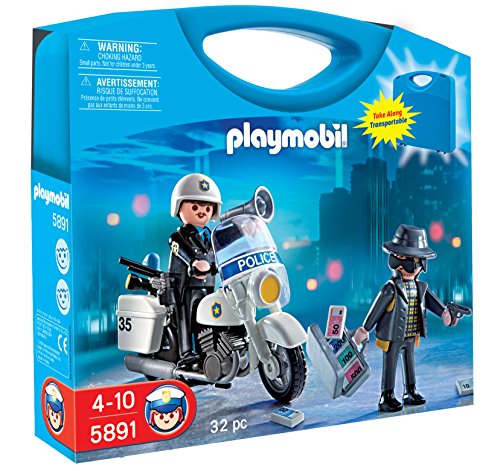 The Playmobil Police Carry Case includes a policeman and his motorcycle for catching the thief with his suitcase full of money. The set comes in a handy carry case to keep all the bits safely stored.