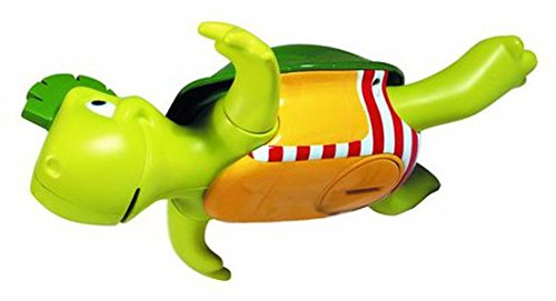 If you like Splashy the Penguin, you'll love his friend Swim 'n' Sing Turtle. This delightful turtle, complete in striped bathing suit, will bring fun and laughter ? not to mention music ? to make bathtime special. Wind him up and watch him swim, place him on his back and he hums "Beautiful Blue Danube" whilst he swims, put him on his front and he'll even gargle it!