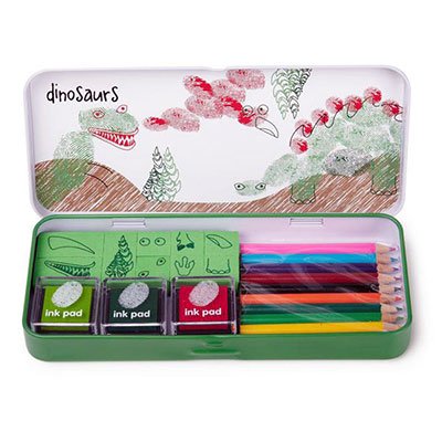 Fun art at your fingertips! Your fingerprints are unique, turn them into coloured characters! Add faces and features with rubber stamps. Create personalised greetings cards or tiny works of art. Contents: 3 coloured ink pads, 10 rubber stamps, 10 colouring pencils.