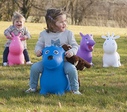 HappyHopperz is a collection of bright, inflatable animals that not only rival the space hoppers of the 1970s but take bouncing to a whole new level. Created with ears and horns for children to grip on to and feet to steady the bounce, these wonderful animals come in a variety of different styles and colours to give Old Macdonald a run for his money. The hopping experience provides a great aerobic workout for toddlers and pre-schoolers whilst also strengthening their core muscles, increasing balance control and developing co-ordination skills. With a wide choice of animal designs and colour ways there is a HappyHopperz design to appeal to even the most discerning little rider. Best of all, as HappyHopperz inflate and deflate in a matter of seconds and fold down compactly, once a child gets attached to them it's no a problem as they can go everywhere with a family; from grandparent?s house, to the park or beach holiday. Thanks to their colourful, adorable looks and immediately rewarding ride it really is a case of love at first sight when children first see HappyHopperz. Luckily for parents? wallets HappyHopperz unique design means their appeal lasts well beyond the first flush of infatuation. HappyHopperz? brilliantly simple design means there is no fiddly functionality to go wrong and no components or batteries to regularly replace, whilst the toy?s bright wipe-clean surface ensures it will stay as funky and fresh looking as the day it was bought whether its bounced through sand, mud, grass or puddles.Suitable for ages 12 months - 30 months