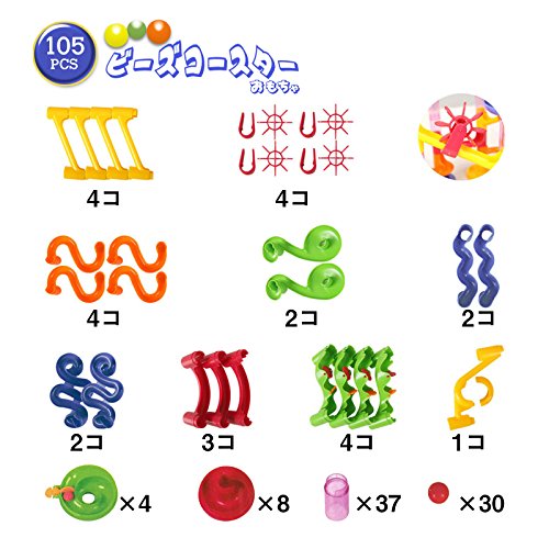 • 様々なパーツを組み合わせて自由にコースを作成し、ボールを転がして楽しみます。パーツが透明なためボールが転がっていく様子を楽しめます。 ボールが転がっていく様子をあれこれ試しながらコース作成を色々楽しむことで想像力が育まれます。