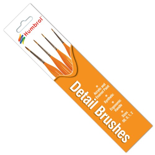 Humbrol ultra fine sable hair brushes are ideal for painting small detailed areas on your models or figures. The easy grip ergonomic handles make them a pleasure to use for short or long periods of time. Suitable for Enamel and Acrylic paints. Safety notice: Retain Packaging for future reference. Contains Small detachable pieces that may be swallowed. Made In China. 14 plus. This pack contains four different brushes sizes 00, 0, 1 and 2.